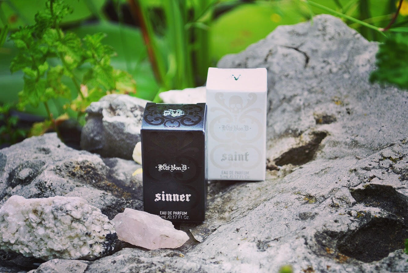 Left to Right: The new liquid lipstick by Bite Beauty, and the Sinner and Saint scents by Kat Von D! Reviews coming soon!