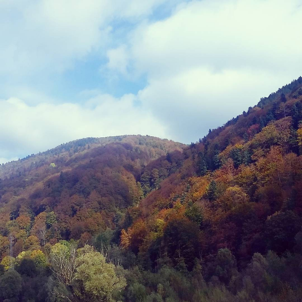 I started taking Autumn photos while I was in Romania visiting family! The trees in the mountains were especially pretty, but I was on a 5 hour bus ride going through the mountains and couldn’t just demand for the bus driver to stop so I could take photos (sadly, haha). I therefore only got a photo through the bus window…but I think it still turned out nice (middle photo).