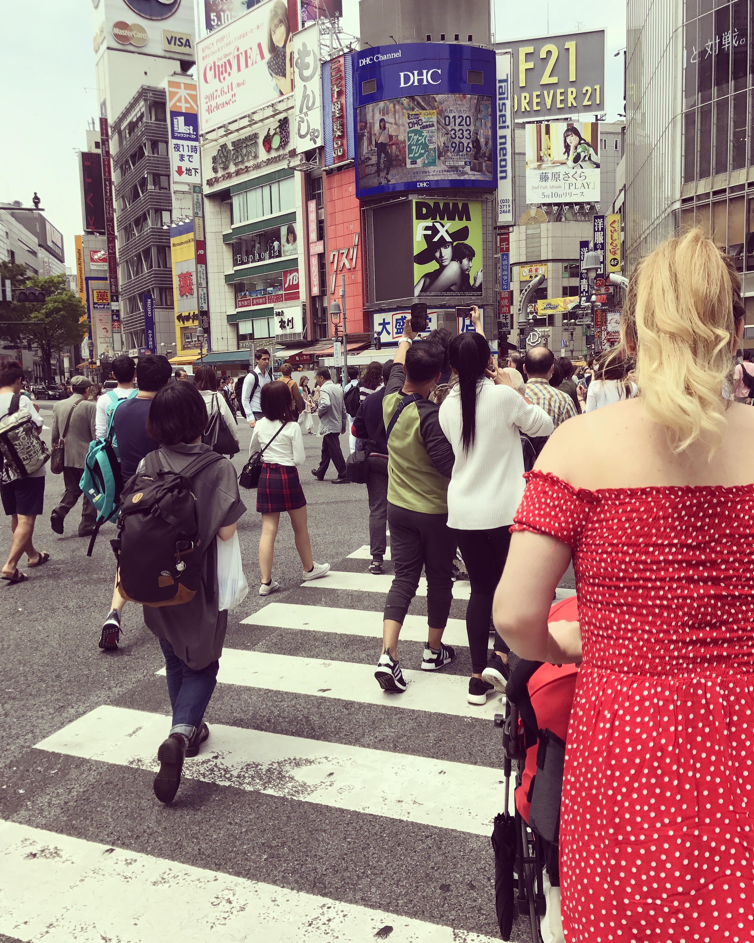 Once we finished eating, we headed out to look for Goden Gai, a very famous cluster of streets filled with tiny bars. When we did find the main, and most famous, street we realized that we should really have visited at night, because all of the bars were closed in the daytime. We walked along the street, took some very boring pictures (which I didn’t even bother uploading on here, haha), got some strange looks, and then made our way back to the station and to Shibuya!