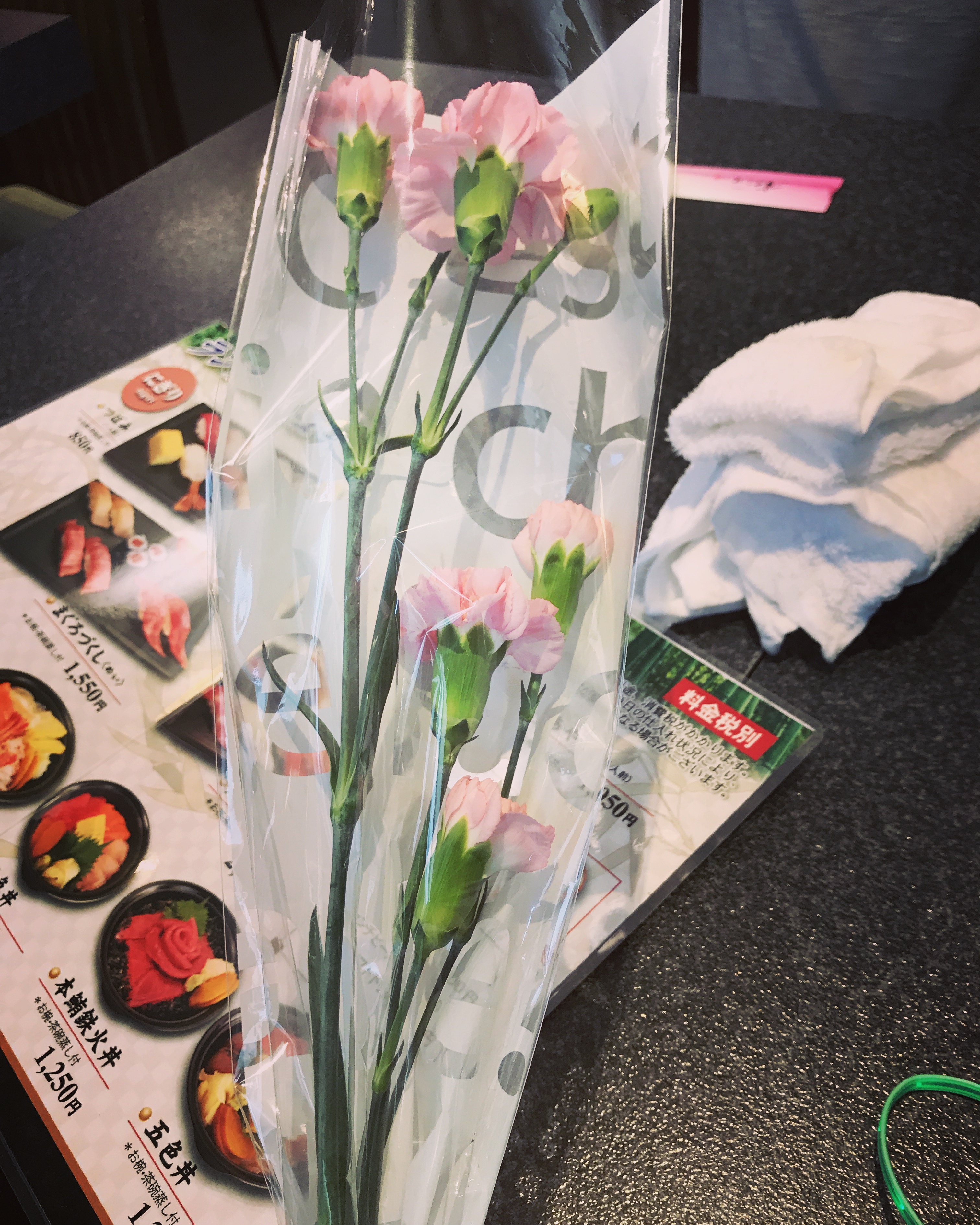 We were seated and looked over the menus (which were considerably easy to use even without the help of my dad, whom I’ve mentioned speaks and reads intermediate Japanese). While waiting for our waiter to return and take our order, a group of men finished eating at a table near us, and one of them gave me a bouquet of flowers on the way out. It was very random, but I will admit that I felt quite flattered! My day just got better once we were eating our meal, since everything was delicious, and we left with full stomachs, ready to make the long trip to the Ghibli Museum!
