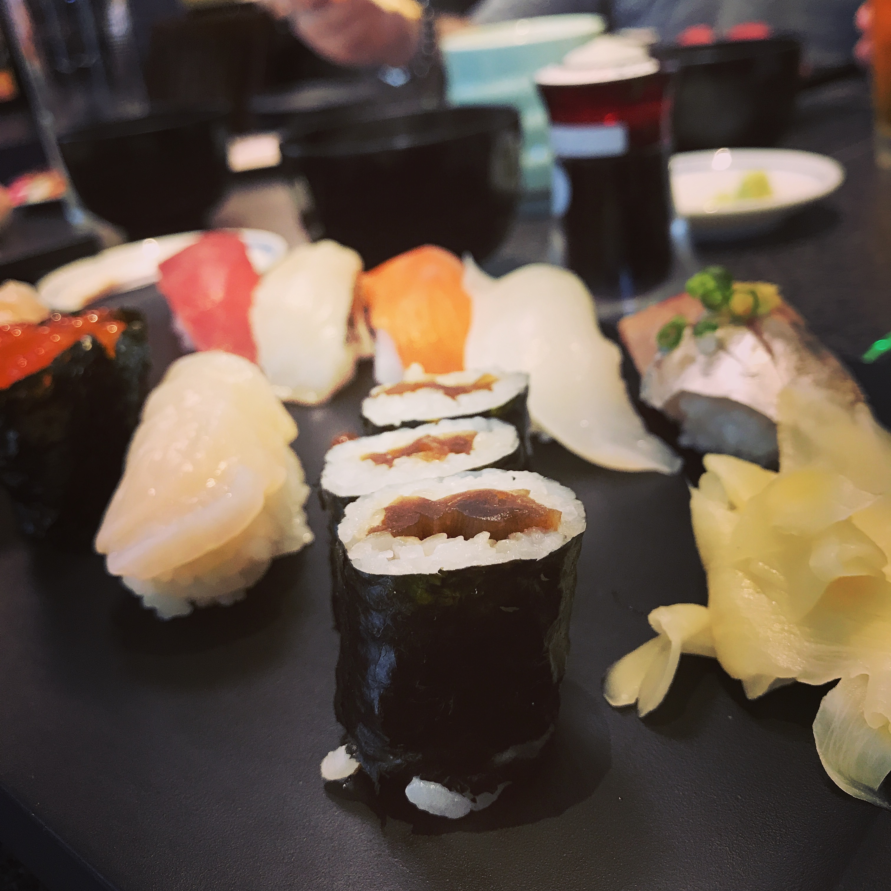 While Shinjuku is an alright area, the station can be very confusing for switching trains, and I find the ward to be quite busy and not really containing many things of interest for me (other than restaurants of course!) Shibuya is much more to my taste, and I was very excited to visit it again. I really enjoy observing and watching Shibuya crossing, looking at the statue of Hachiko (even though it makes me cry every time), and walking the streets filled with interesting shops and restaurants. We spent a few hours exploring before we felt hungry again from all of the walking, and entered the first sushi restaurant which looked to our taste.