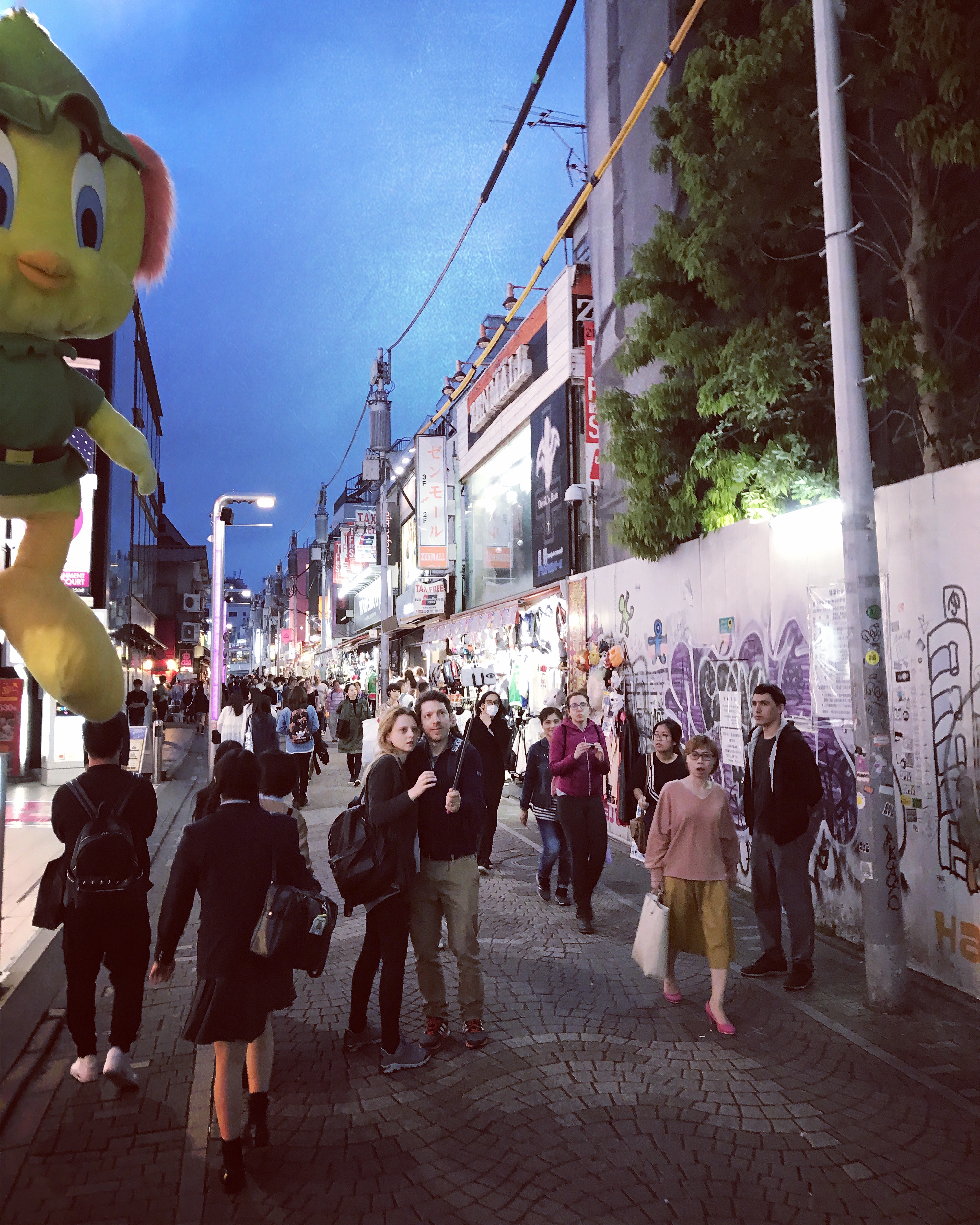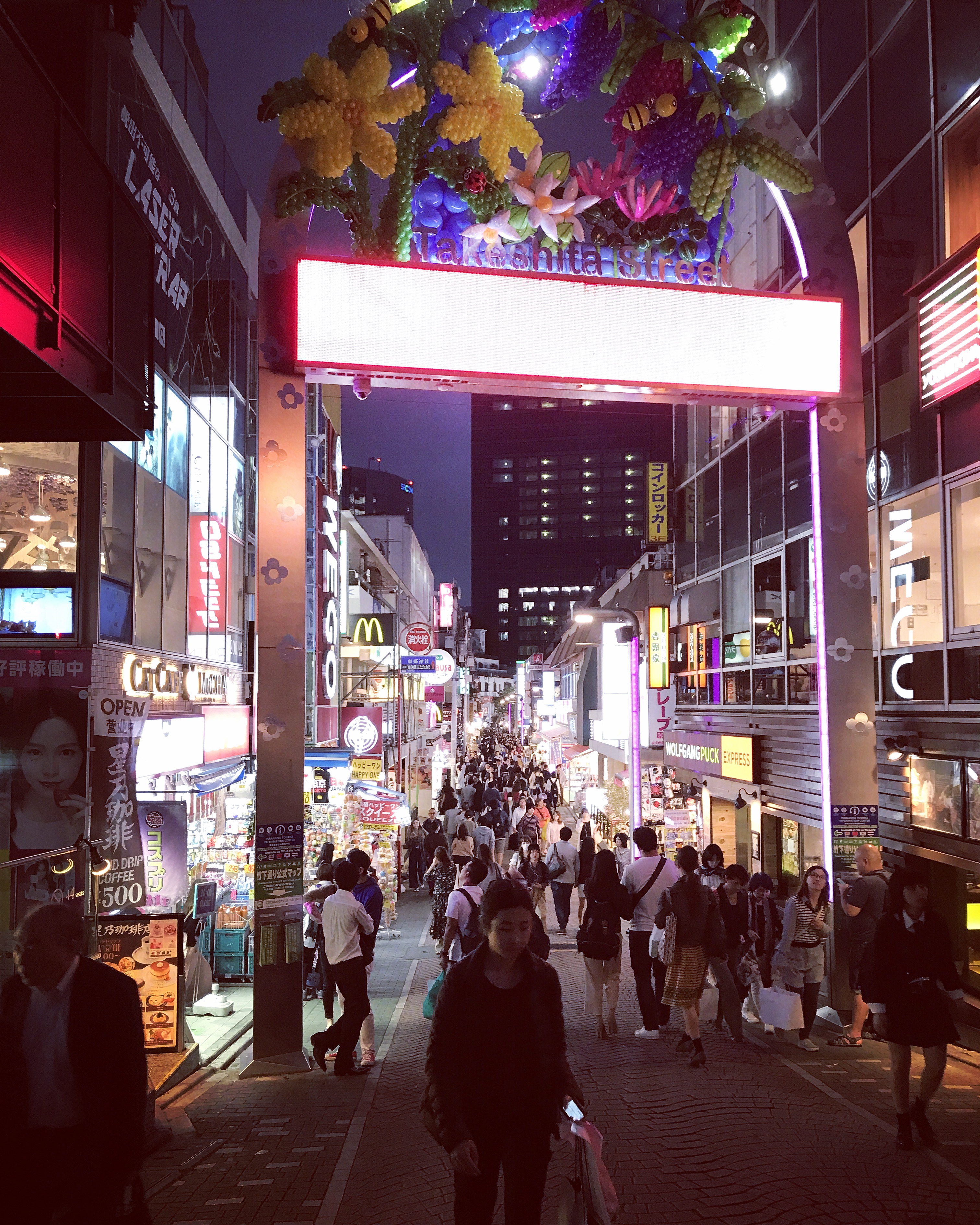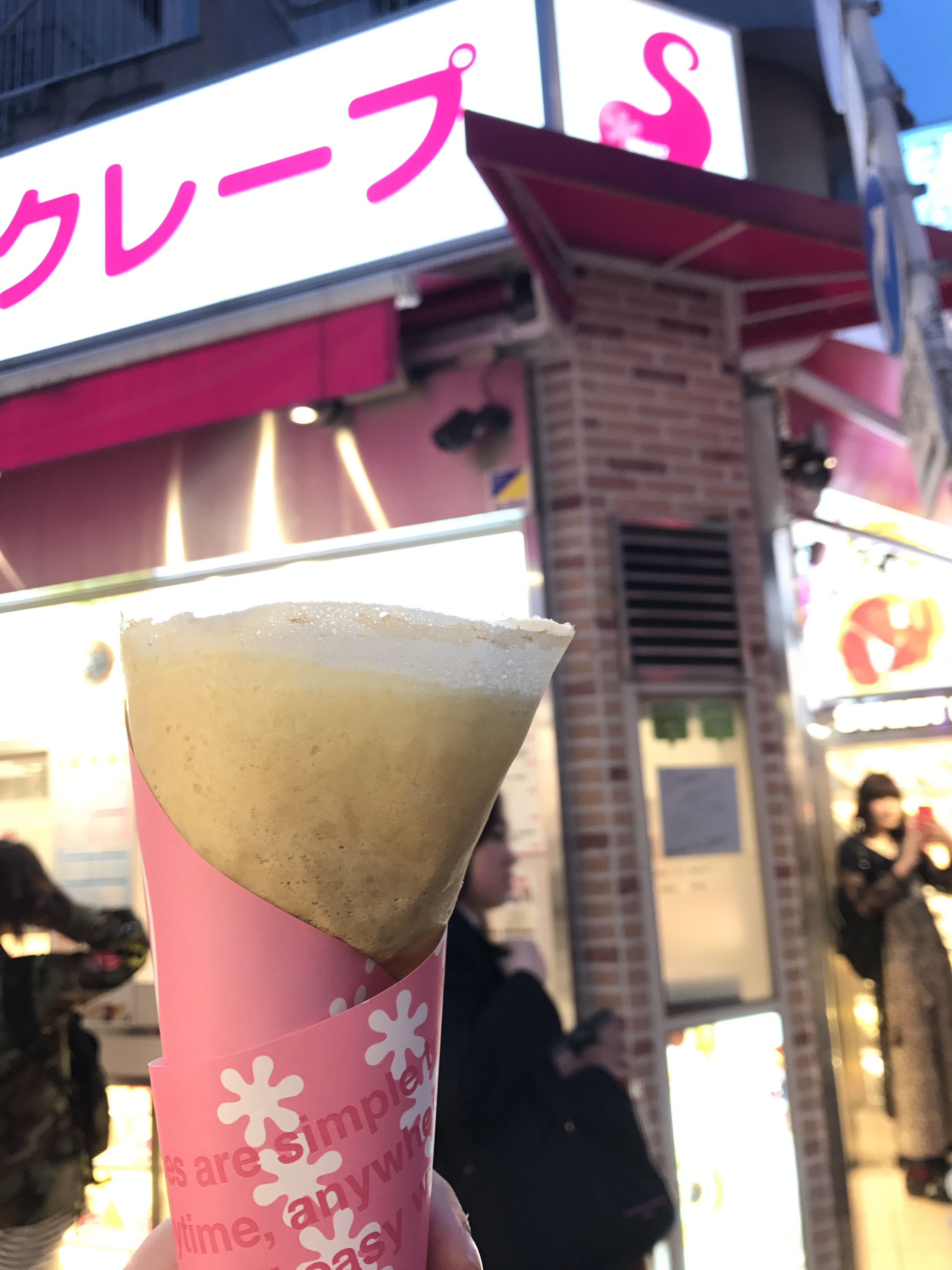 The last time I was in Tokyo, I saw Takashita street and other parts of Harajuku mostly in the daytime, so it was interesting and neat to see everything in the night time! Last time my friends and I went for some very tasty okonomiyaki (a type of delicious pancake) for dinner, and were too full to get the famous Harajuku crepes…but I got one this time, and it was delicious! This place is very interesting regarding colour, culture, shopping, and food, and the next time that I visit Japan, I will definitely be visiting it again!