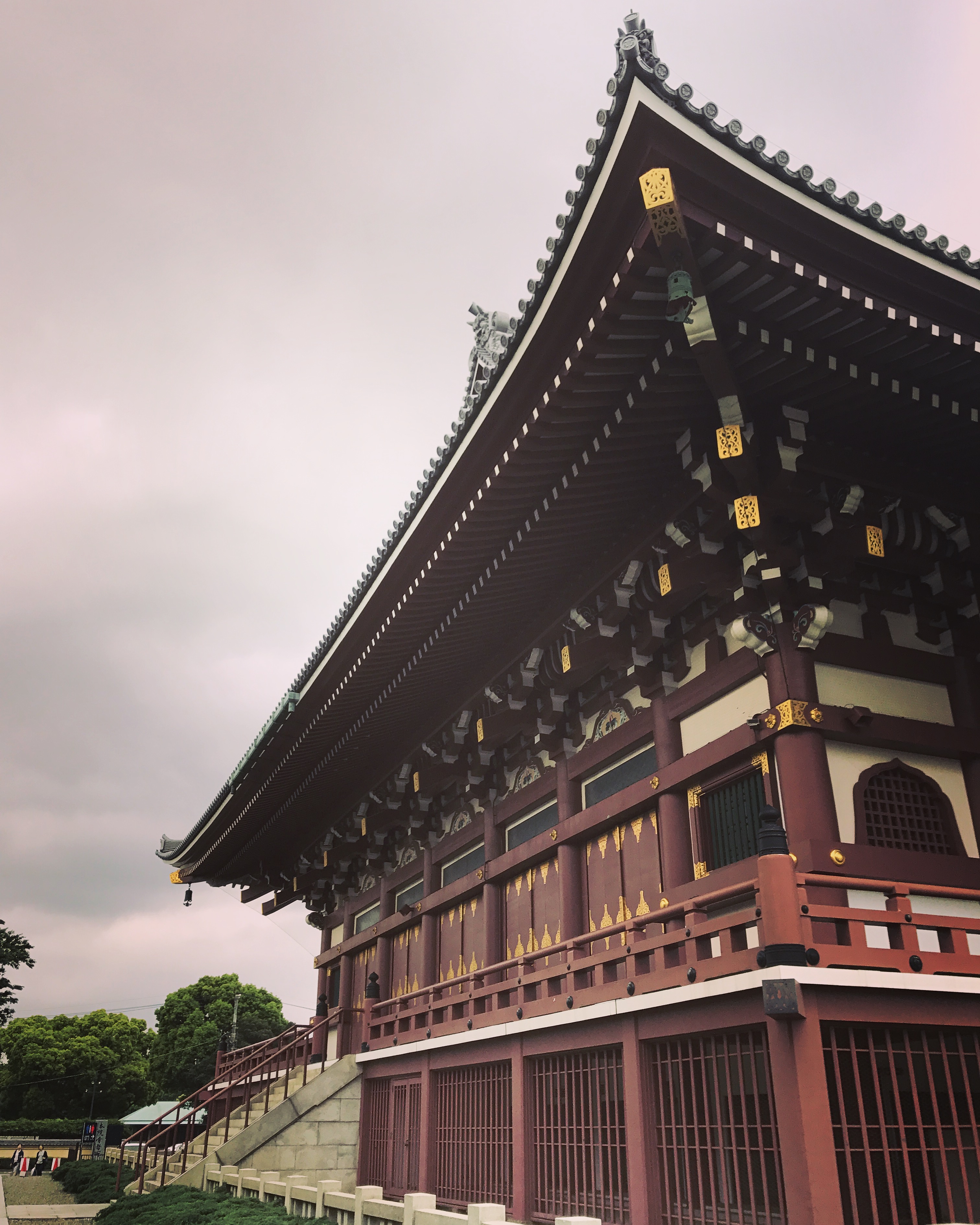 We found the house I’d stayed in (a place which they’d only seen through Skype calls), and which we were sad to see had been turned into a massage parlour for the elderly? (This was very unexpected, since I’d just expected that a family, or students may have rented it after my friends moved out.) And then we made our way to the nearby Ikegami temple! I like this temple a lot, and recommend it to those who would like to visit a temple in Tokyo which is not crazy busy with other tourists! It was nearing the end of the day (well, sunset), so we were almost the only people there. I’m not sure if I mentioned this, but temples are open from sunrise to sunset in Japan, and while we were there in May, the sun would set at 6 PM! Being used to the sun setting around 8 or 9 PM around that time of year in Canada, this was very eerie for us, but also quite an experience. We were able to see some of Tokyo at night, despite being out and about since the early morning!