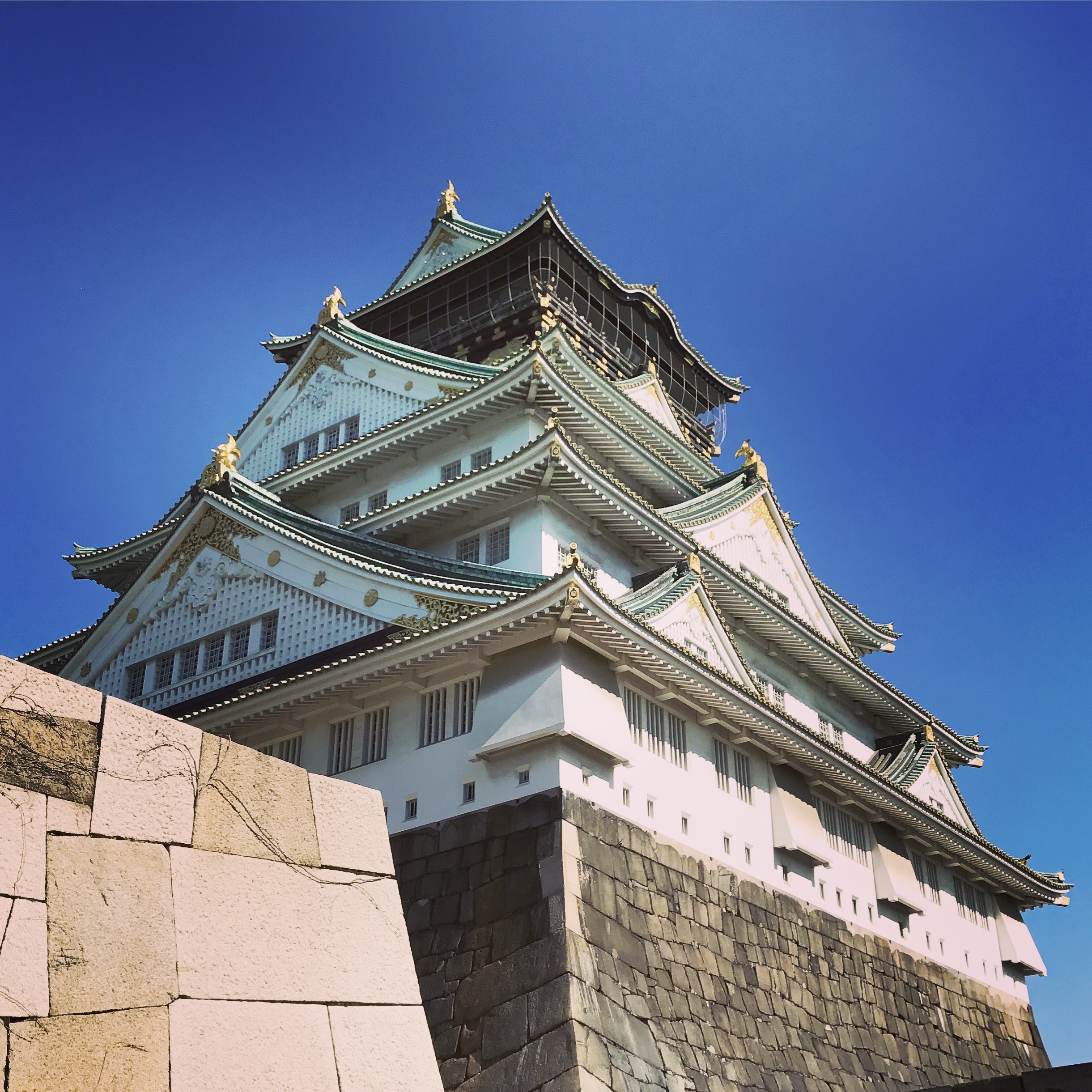 Note: This post will be a little shorter than the others, since it was the end of the day, and we didn’t stay in Osaka as long as the other places. Also, I was quite ready for bed by the time it got dark (but more on that at the end of the post)! The first thing we did after getting off the train in Osaka (and I still can’t believe that we made it there) was to go see the Osaka Castle! And it was quite amazing! It was definitely the largest castle that we had seen in Japan so far, and we were in awe.