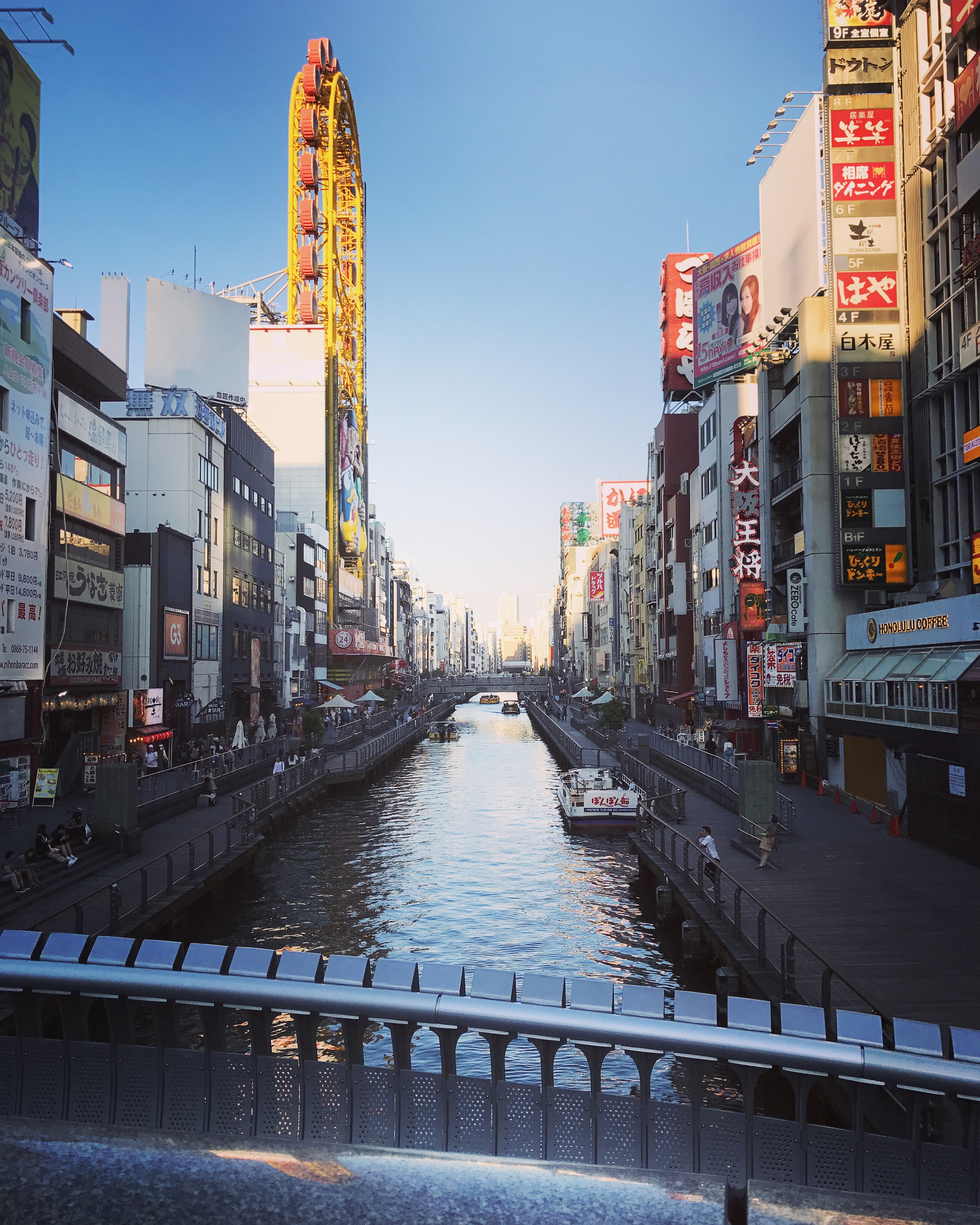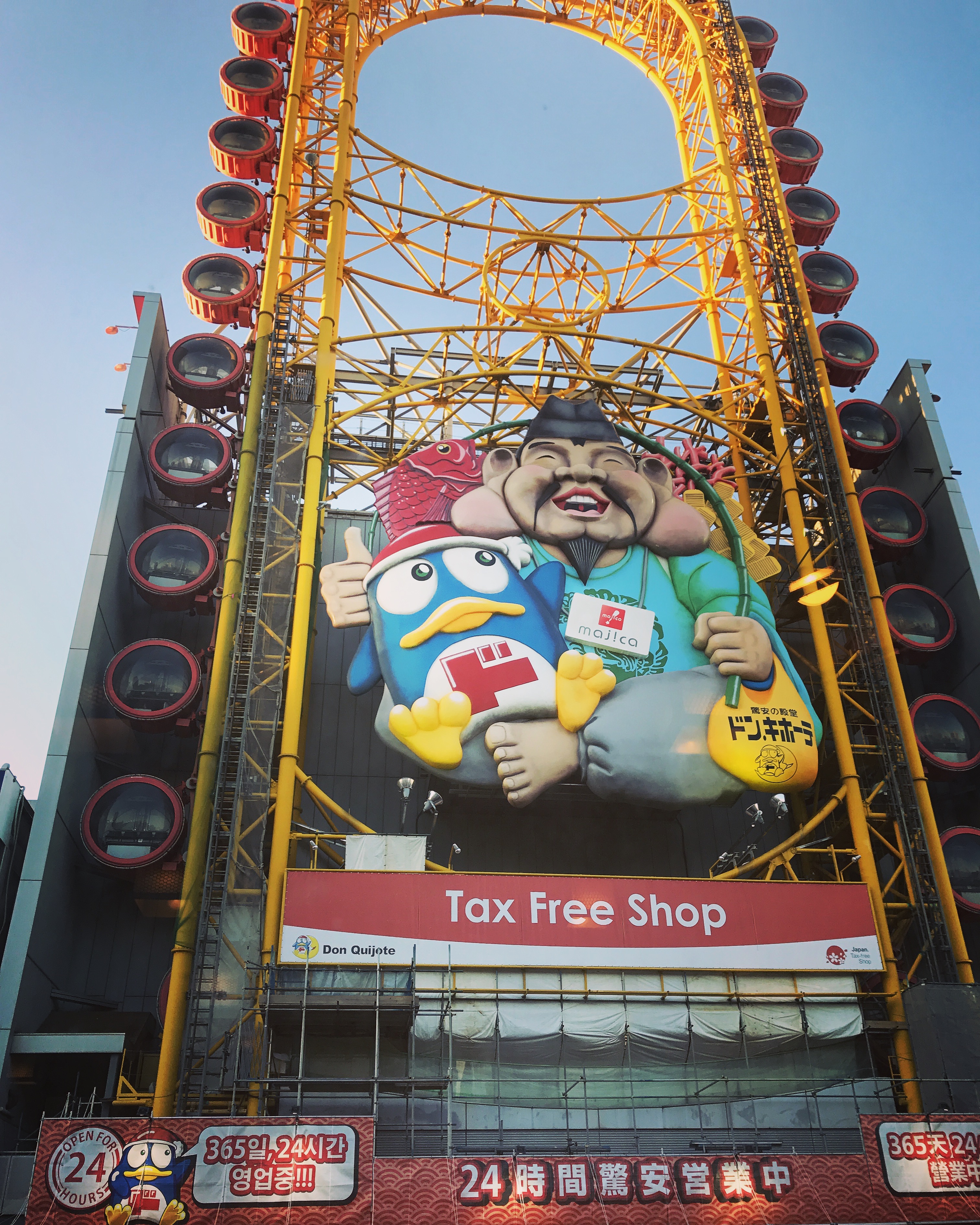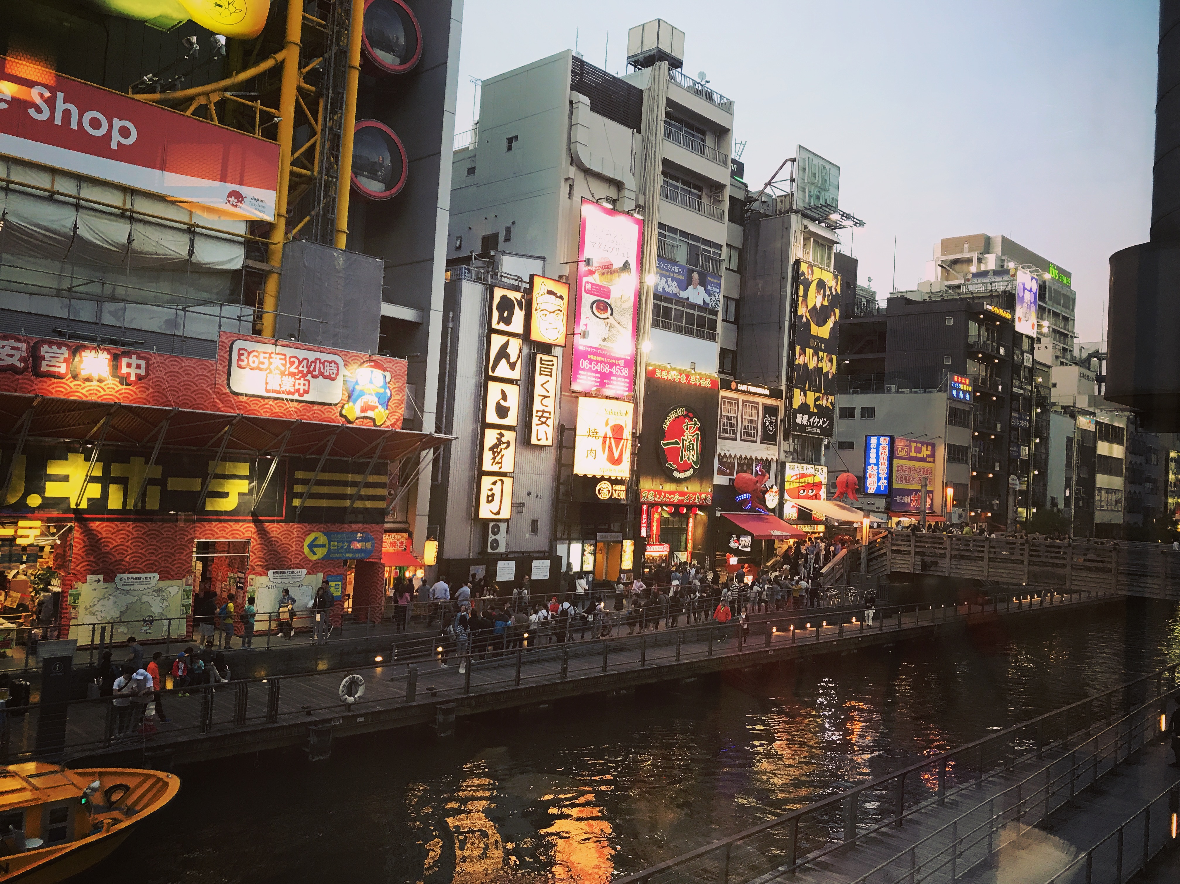 Sadly, Kanidoraku honten Osaka was a bit above our budget, so we continued on, in search of another place that we could eat at. And despite being unable to eat at Kanidoraku honten Osaka, we were still quite happy with our find! I forget the name of the restaurant that we did eat at, but I do remember that we were very happy to have a view of the river, as well as the very large contraption outside of the largest Don Quijote store we had ever seen (though the contraption was out of order)!