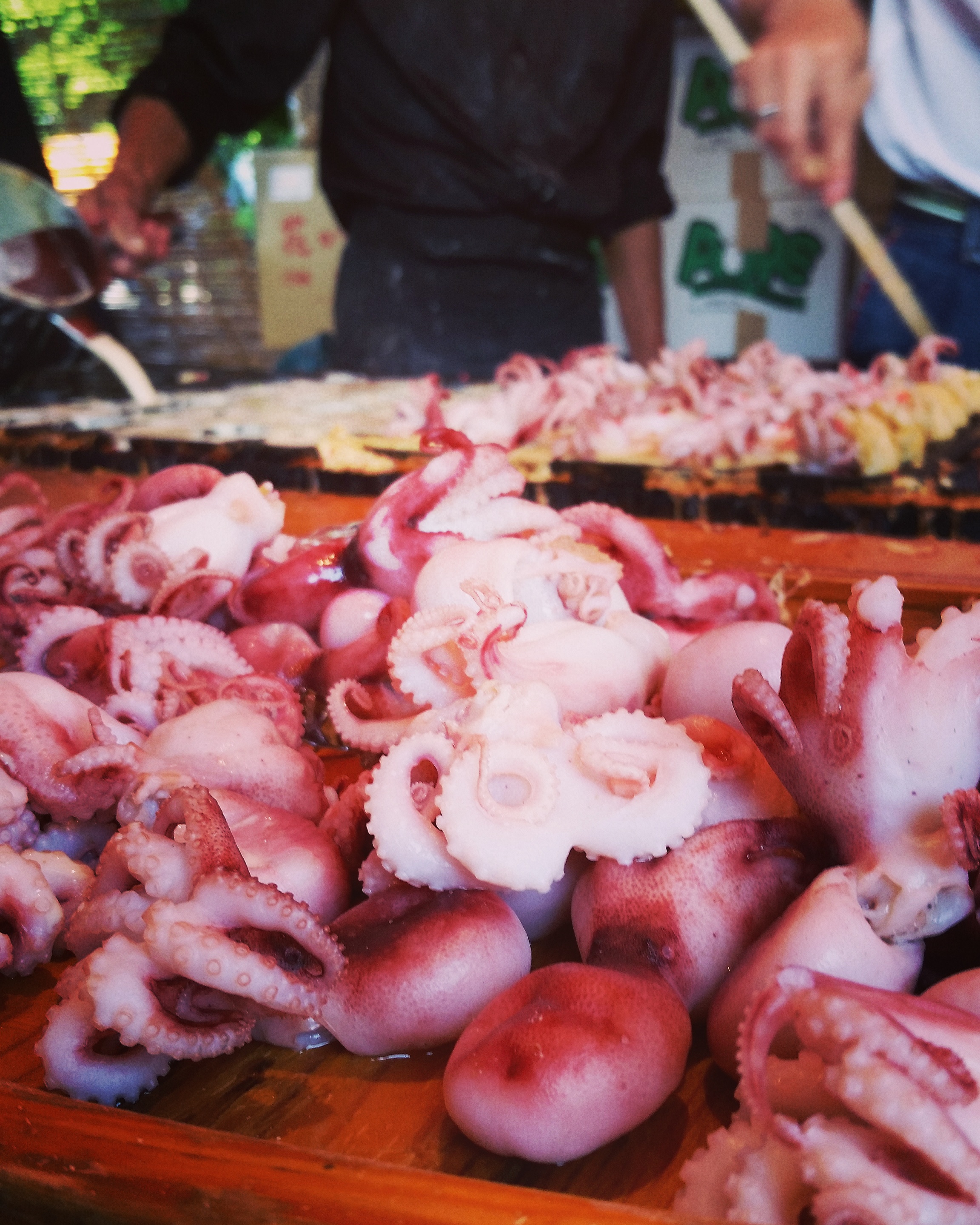 All of us like to try new things, so getting food from as many stalls as possible was, of course, the natural thing for us to do! I sadly didn’t get pictures of everything because we were busy feasting. By the time we got to the squids (pictured above), we were full enough to take a breather (as well as some photos). Everything was so tasty!