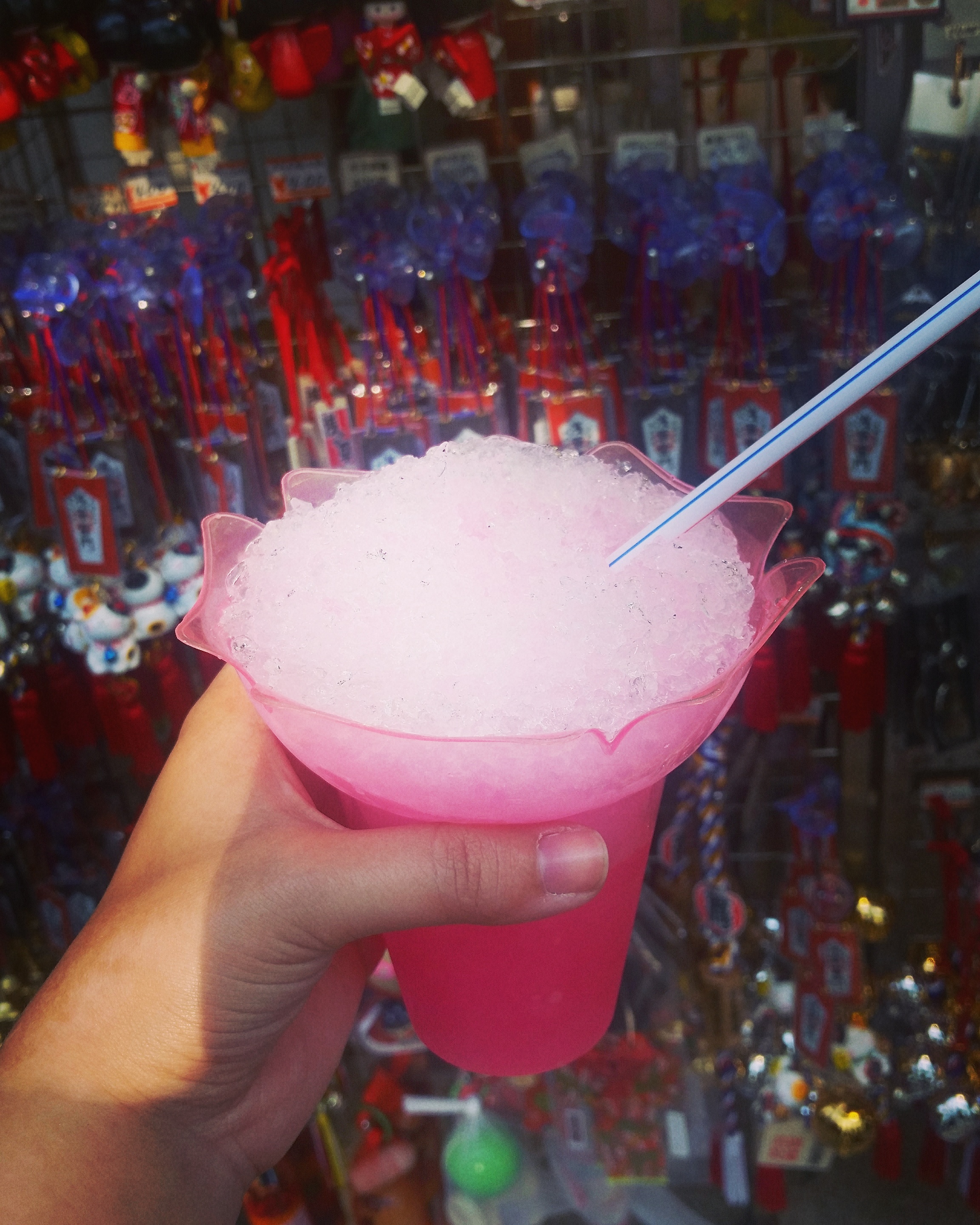 I forget what else we ate, except that I think my mom got a large watermelon slice which she ate standing up. Afterwards, my parents rested for a bit, and I wandered around the festival and found some interesting stuff, including the statues pictured below, flavoured shaved ice, and a long row of souvenir shops where I picked up some gifts!