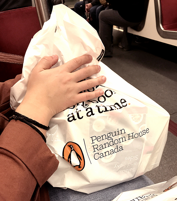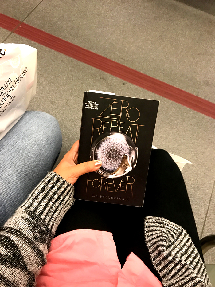 While on the subway, heading back to the mall where we’d parked, we were able to rest and have a look at our swag and the books which we had the honour of taking home. I was also able to read a little from Zero Repeat Forever by Gabrielle Prendergast (who is also a Canadian author! Hurray for CanLit!) Another reason why we love the subway, and prefer it to driving in a car, haha. Then we made it to the mall, found that there were still many cars parked in that parking lot (because there’s a movie theater in that mall, sigh), got into the car anyway because we weren’t about to spend another 20 min heading back to TIFF (even though it was tempting), and somehow endured the long drive back home!